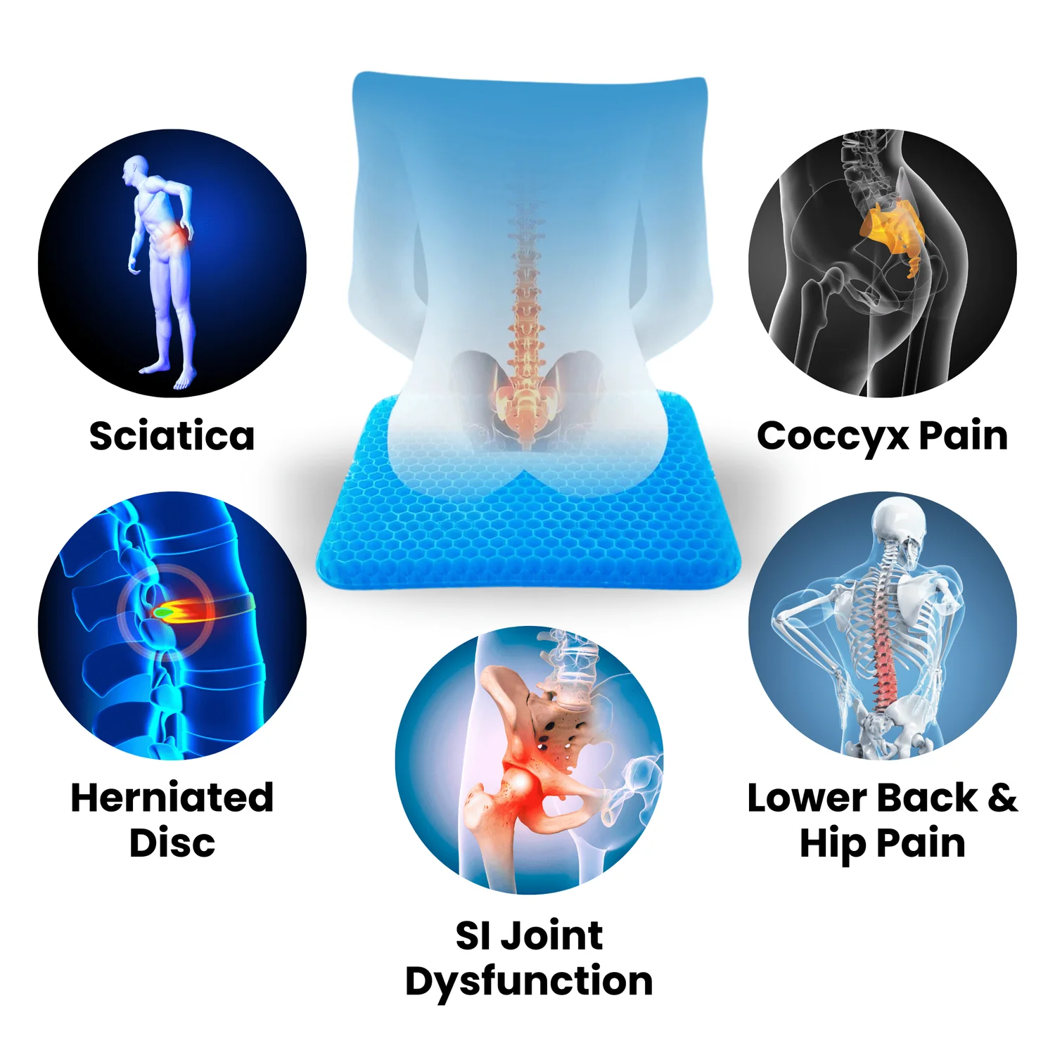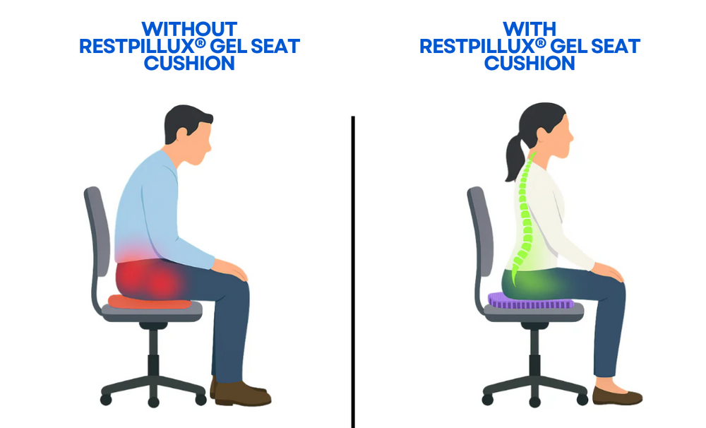 The Restpillux® Gel Cushion combines medical-grade gel with ergonomic design to relieve pressure, improve posture, and ease discomfort the moment you sit down — leading to these powerful benefits: